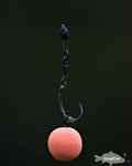 In de haakbocht zit een Hook Bead en een Bait Screw. Er is gekozen voor een Bait Screw zodat je zeer gemakkelijk een pop-up kunt bevestigen of vervangen. Tot slot is de Rig netjes gefixeerd met Shrink Tube wat het geheel netjes op zijn plek houd en de haak in de juiste hoek laat staan.