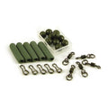 Met deze Heli Set van Extra Carp haal je alle onderdelen in huis voor het maken van je eigen helikopter leader voor het karpervissen. Je kunt een helikopter Leader maken los op je hoofdlijn, met een Leadcore leader, of met tube op de hoofdlijn. Dankzij de donker groene kleuren van de producten valt je montage mooi weg tegen de meeste bodemtypes. Een voorbeeld voor het maken van een helikopter montage staat op de achterkant van de verpakking.