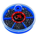 Doosje met knijploodjes van hoge kwaliteit, speciaal geschikt voor het dobbervissen. Dit handige bakje bestaat uit 5 vakjes met meerdere maten loodhagels overzichtelijk gesorteerd in verschillende vakjes. Zo heb je een voorraad van vijf verschillende gewichten waaruit je altijd snel het juiste gewicht kunt kiezen, variërend van 0,15 tot 0,9 gram.
