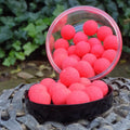 Fluo Roze Bubblegum Pop Ups in 15mm. Deze Pop Ups hebben een ontzettend hoog drijfvermogen, fluo roze kleur en de herkenbare, zoete geur van bubblegum. Naast deze sterke flavours zijn er meerdere attractoren toegevoegd.
