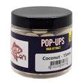Witgekleurde Coconut Pop Ups in 15mm. Deze Pop Ups hebben een ontzettend hoog drijfvermogen, witte kleur en een romige, zoete kokos geur. Naast deze sterke flavours zijn er meerdere attractoren toegevoegd.